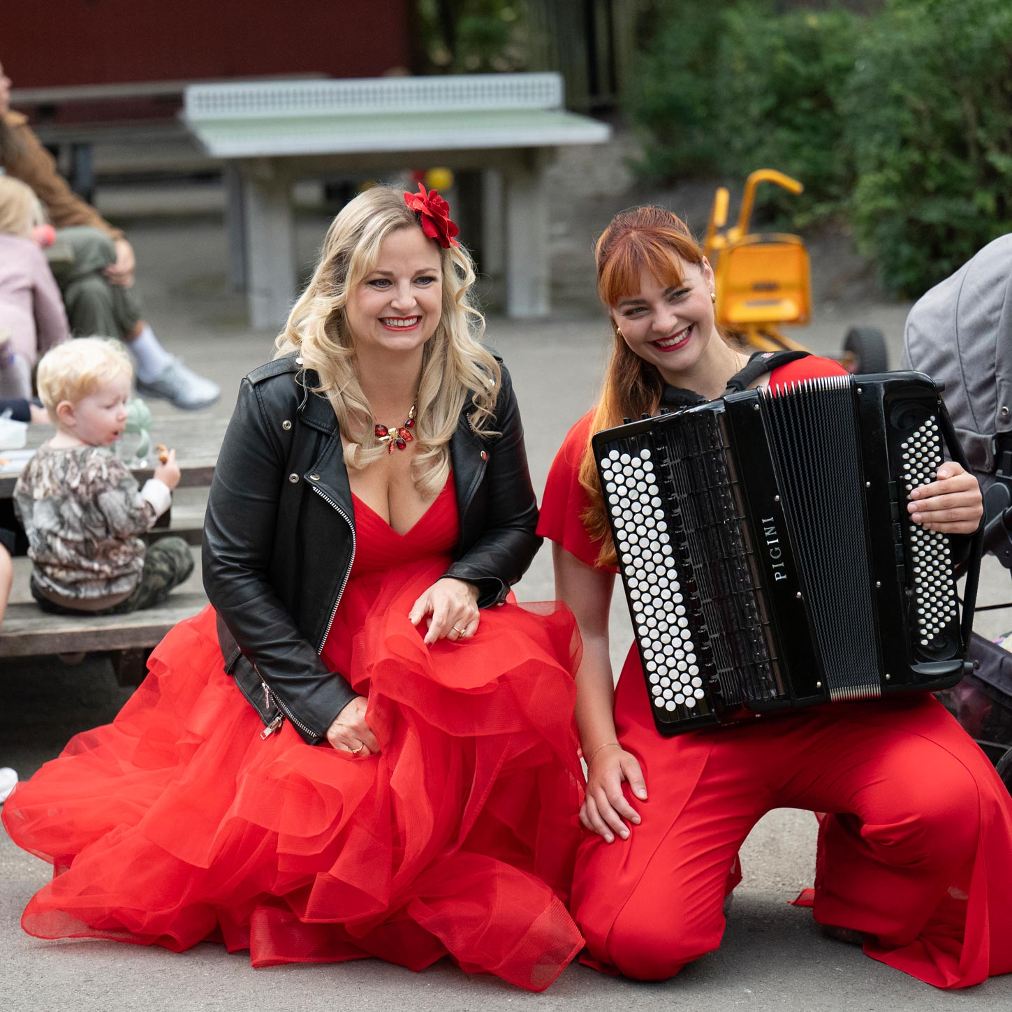 "Vi har haft den store glæde at have besøg af operasanger Nickie Johansson og akkordeonisten Julie Holmegaard Schade, som optrådte med klassiske operahits påvores legeplads.